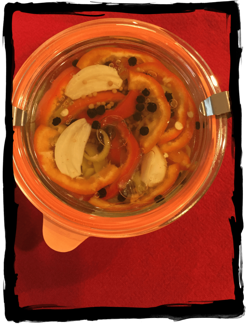 3. Reduce heat and simmer for 5 minutes. Pour hot brine over peppers; seal jar. Let cool, then refrigerate.